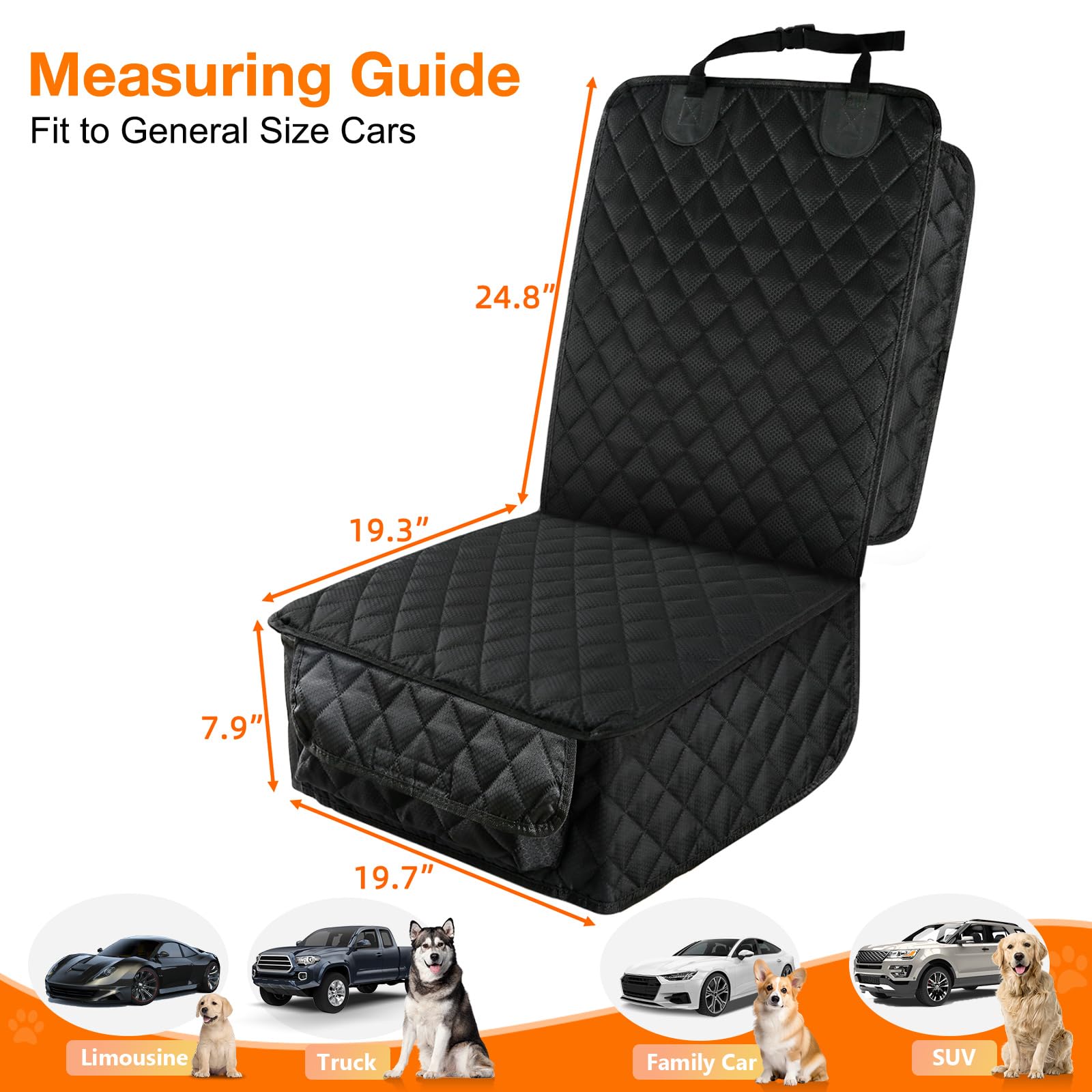 Fits the front seats of different vehicles like cars, trucks, and SUVs! Supplies your pets with comfort while keeping your vehicle interior safe from scratches, fur, and urine (100% waterproof).