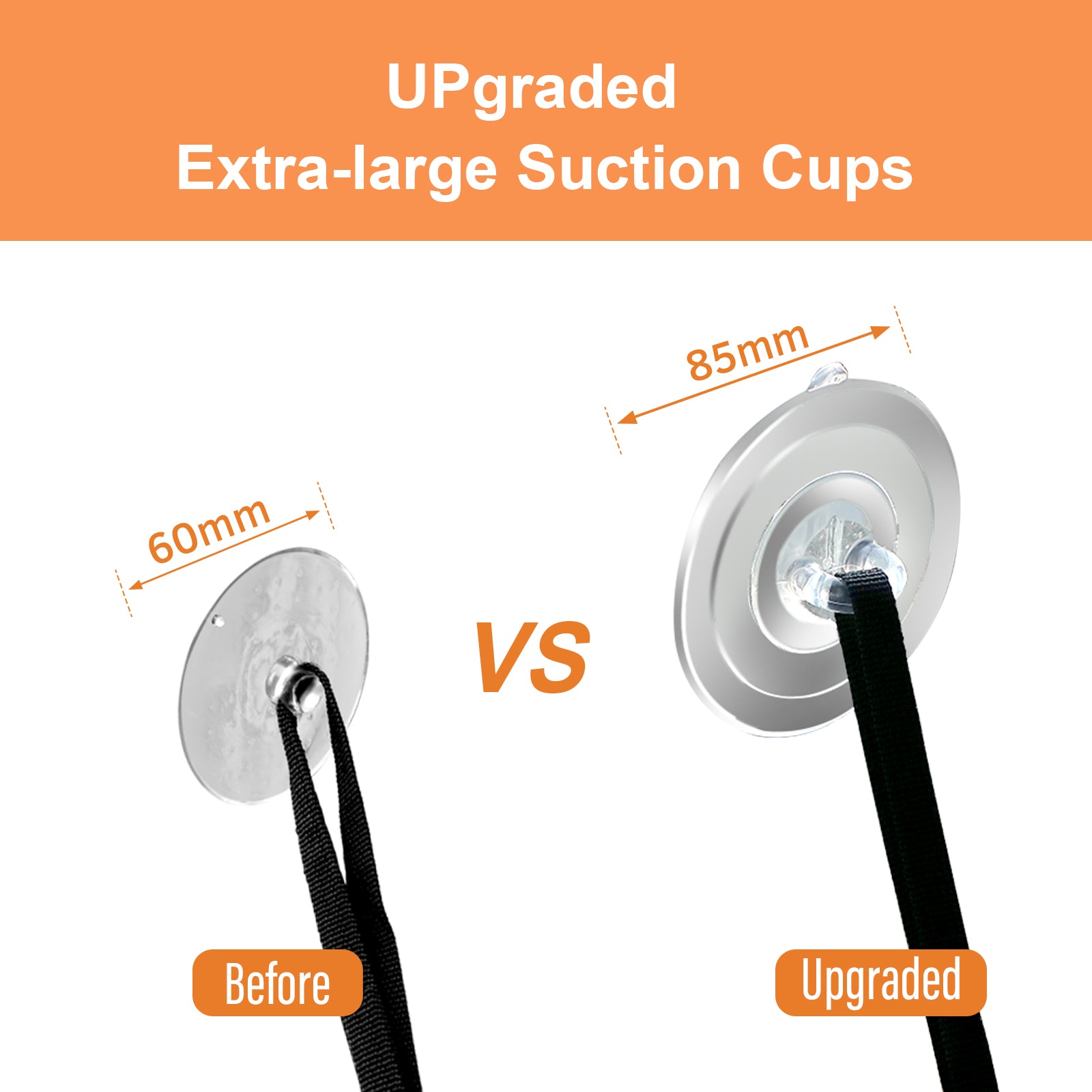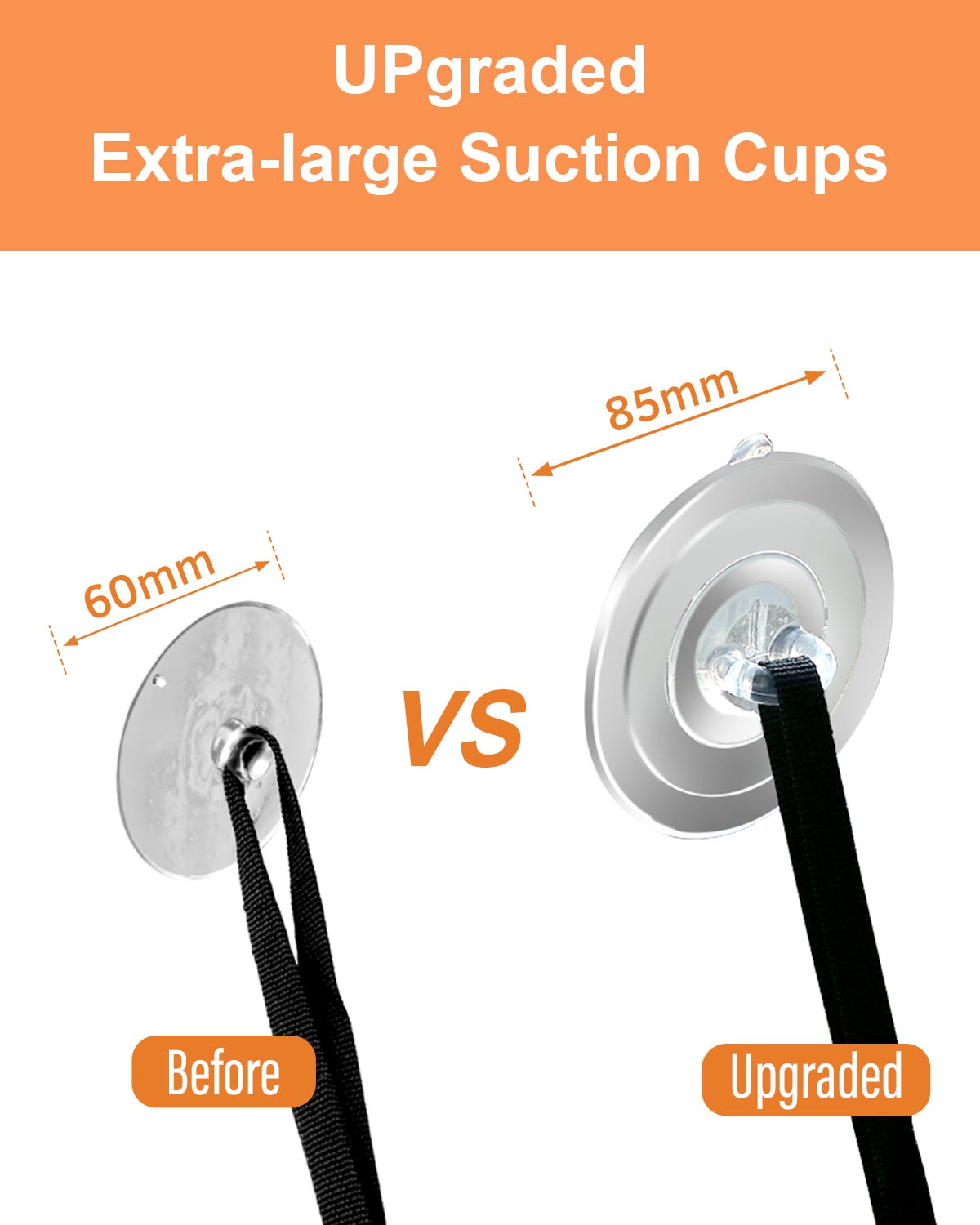 Extra large textured 53.15" x 40" anti-slip rubber backing (twice as much as the average product) for more stability, no worries about quick turns and speed bumps; 2 Suction cups and 3 Strong Velcro on both sides for fixing the side panels on the car to avoid sliding left and right, keeping a safe car environment. NOTES: Suction cups will be more sticky with little water