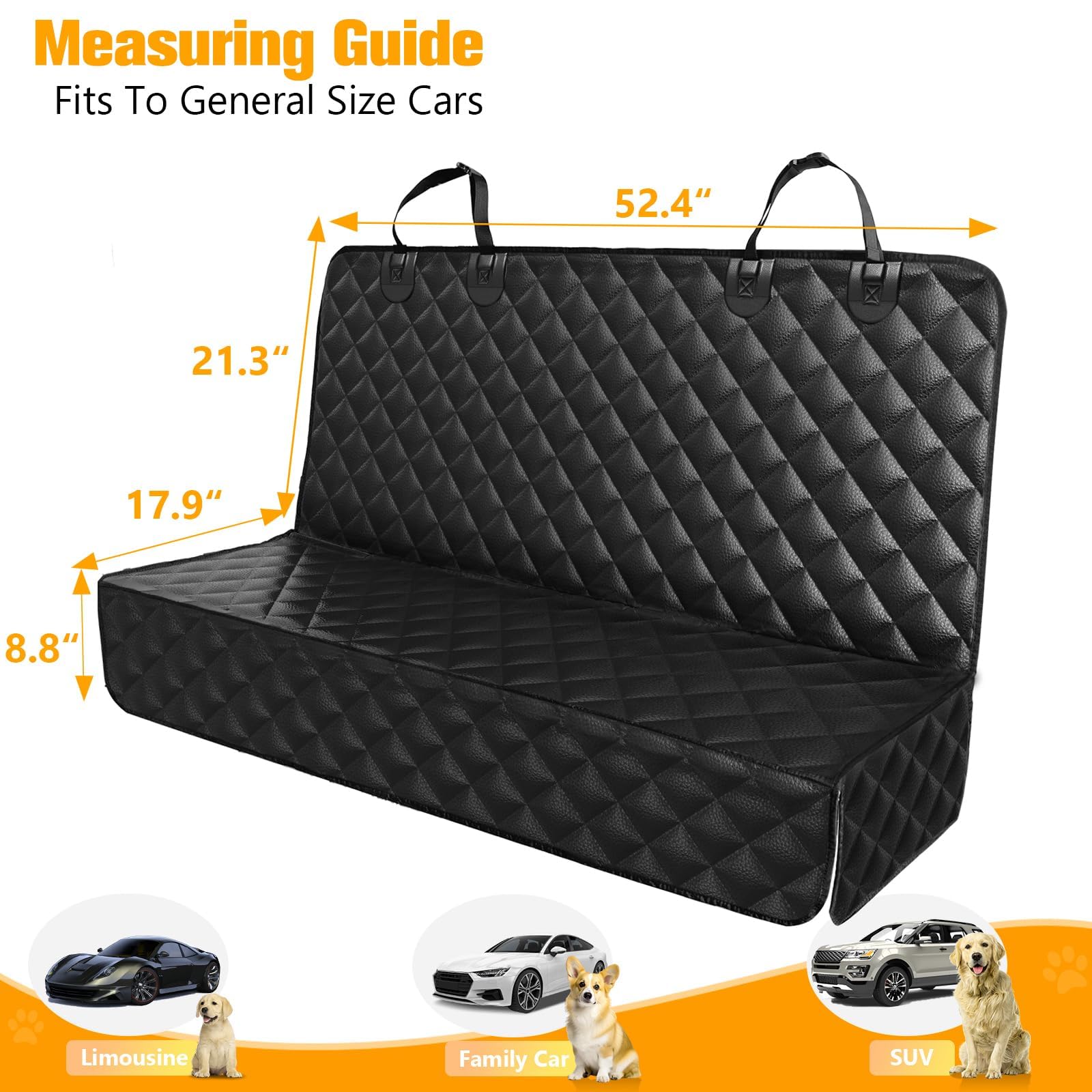 It's about 52” L x 48” W of the dog car seat cover, it will fit most standard cars, trucks and SUVs, including baby car seats. Supplies your pets with a comfortable seat to relax during the trip.