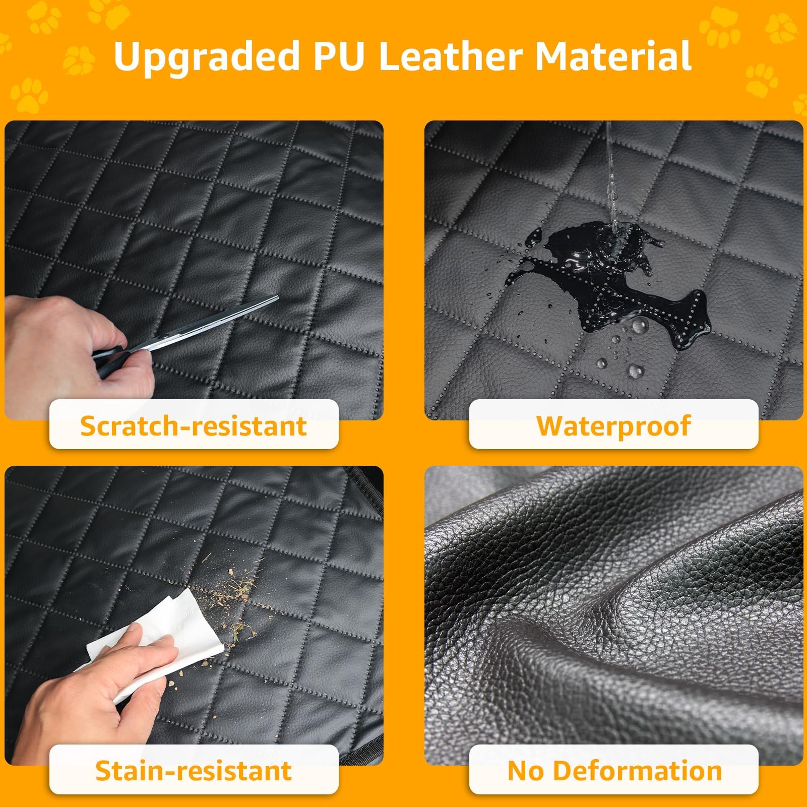 Made from 100% waterproof and scratch-resistant PU leather for exceptional durability and protection. Unlike traditional Oxford cloth, our leather material is super scratch-resistant, waterproof, easy to clean, and provides better grip for your pet, while minimizing your cleaning task.