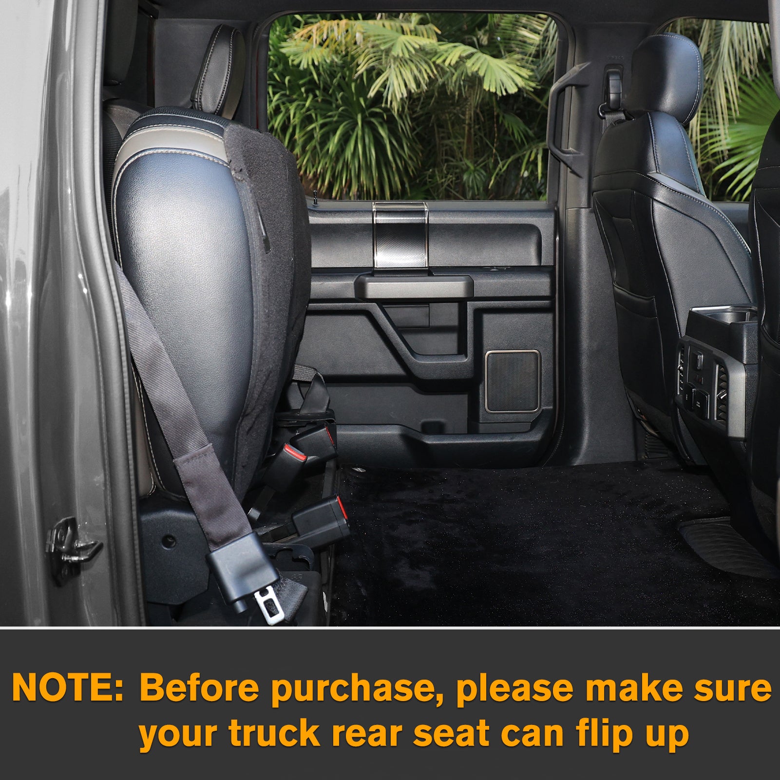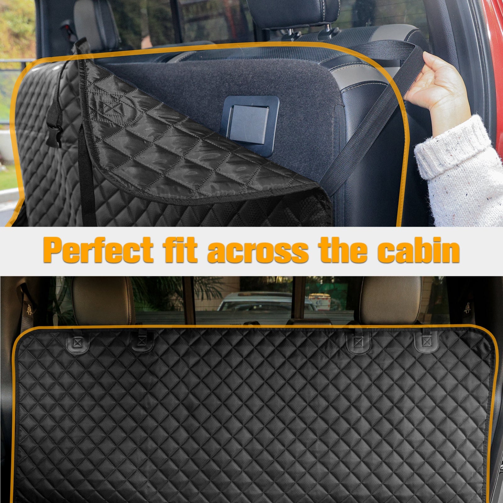 PETICON dog seat cover for back seat truck fit all full-size crew cab trucks with fold up seats. Our pet seat cover for trucks fits LARGE CREW CAB TRUCKS like F150, F250, F350, Ram 1500, 2500, 3500, Silverado Trucks, Tundra, Titans, and other simalar size trucks.
