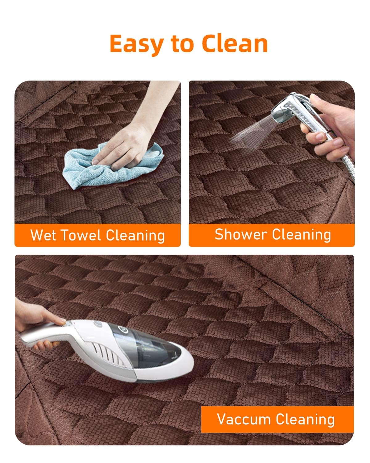 With four quick-release durable buckles, two adjustable door slide straps, and two seat anchors, you can easily install this car seat cover for dogs in seconds. Easy to clean with a damp cloth, vacuum, or water shower.